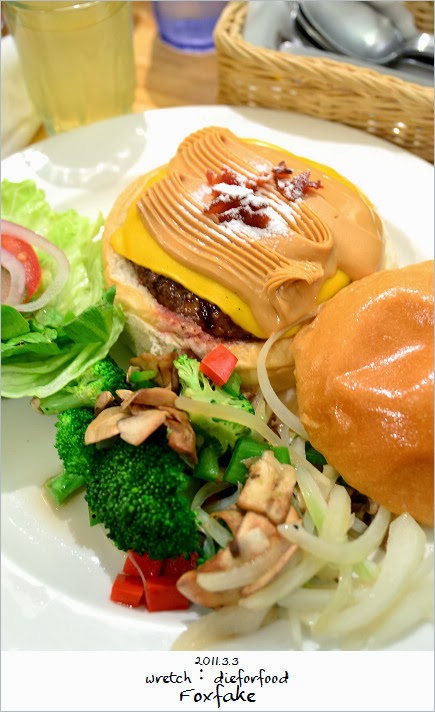 盧小桃的四倍香濃起司堡,這傢伙明明嚷著要減肥,卻還是點了個一看就知道吃了會萬劫不復的起司綜匯堡。